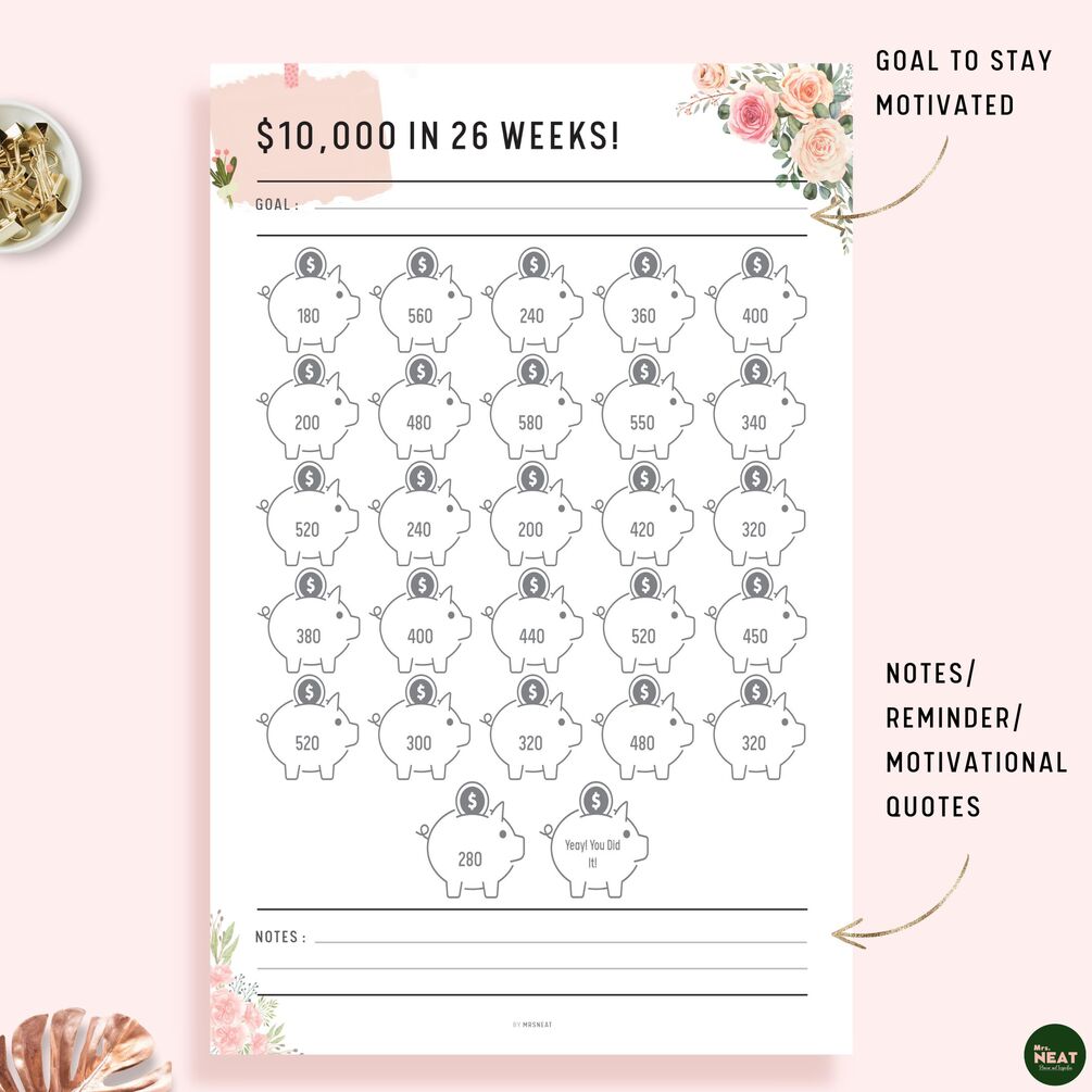 $10,000 Savings Challenge in 26 Weeks