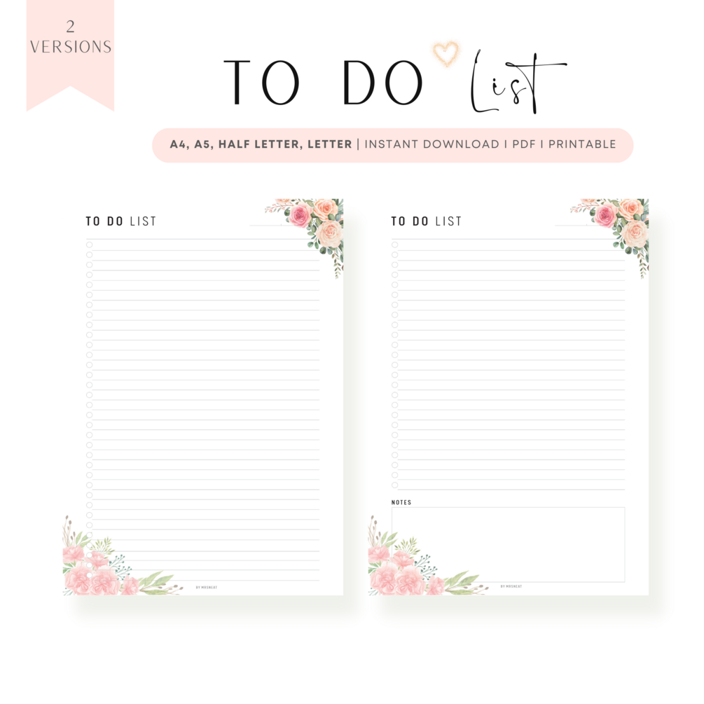 Flexibility: Regardless of your planning preference, our Floral To-Do List Planner Printable offers you the versatility you need to customize your planning experience. It adapts to your unique requirements, providing the ideal framework to tackle any task.